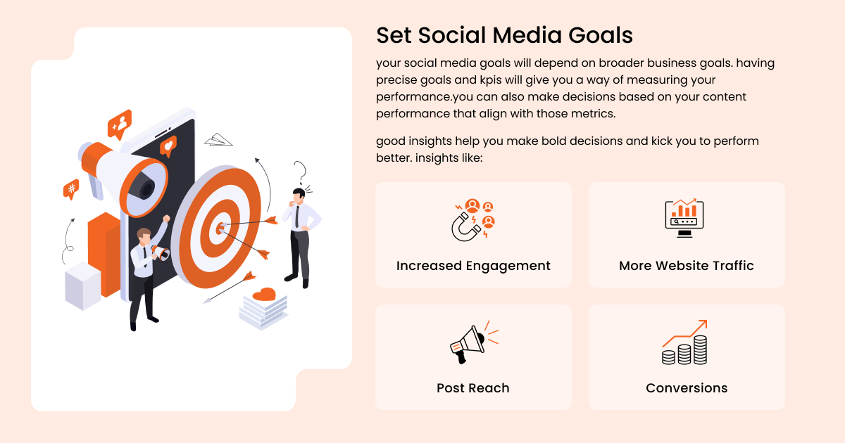 • Key performance indicator (KPI): you need to have a clear plan of the goal and how to achieve it. Like an increase in followers, comments, shares, or brand awareness.